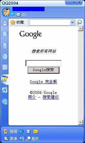 打开“收藏夹管理”对话框添加一个新项目,“名称”为“Goole搜索”,然后在链接栏输入“http://www.google.com/palm”。以后选择收藏中的该项目时将直接在QQ窗口中打开迷你型的Google(如图)。