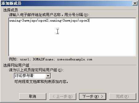 此外,还要在“选择网站用户组”下拉列表中为小编们指定权限,用户拥有的权限是以用户组的形式划分的,包括读者、讨论参与者、网站设计者和管理员四个用户组。每个用户组都拥有不同的权限,这里要根据协同办公的实际需要,来指定用户属于哪个组,最后点击“下一步”按钮即可完成用户的添加。