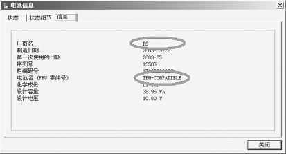 “兼容”电池实际使用时表现如何呢?一块满电量的“兼容”电池在T23上使用时(只使用电池供电),笔者发现当启动某一程序时,液晶屏居然会连续不停地闪动,闪动幅度虽然不是很大,但稍加留意即可察觉,这说明电池的供电不够稳定。笔者想进一步了解电池的放电曲线是否平稳,就在边放MP3音乐边上网的状态下使用了十几分钟,发现任务栏上电池图标中的电量还是显示为100%!可以肯定,“兼容”电池内部的电量计量电路有问题。根据实际测试情况来看,该“兼容”电池在T23上一般可使用2.5小时以上(亮度调为最高亮度的一半,普通操作状态),但有些“兼容”电池用在笔记本电脑上后,会发生电量从10%~30%直接降为0%甚至完全断电的情况。从这里可以推断出这种“兼容”电池内部的电芯可能是二手的或是品质较差的品种,当然也有可能是“兼容”电池的电路设计存在缺陷,这对笔记本电脑的正常工作是很不利的。