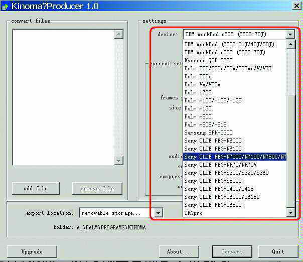 如果你手上有一部Palm掌上电脑,也可以随时随地观看体育比赛,只不过转换视频文件格式的步骤有点不同。Kinoma是目前最受欢迎的多媒体播放软件,它提供了“一站式”服务,可让用户在电脑中进行视频文件格式转换,然后传送到Palm掌上电脑进行播放。