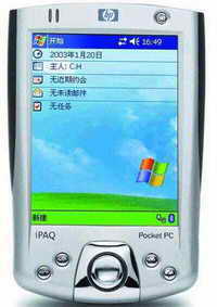 HP iPAQ H2210(图8)是近期市面上比较受欢迎的一部PPC掌上电脑,原因在于它是一部双插卡(CF卡+SD卡)且内置蓝牙无线传输功能的掌上电脑,功能相当齐全。