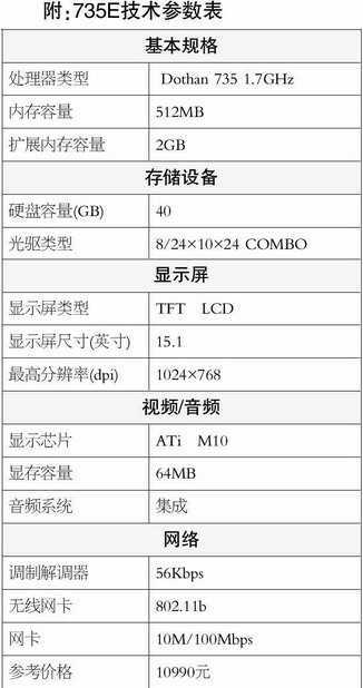 目前的高端品牌笔记本电脑一般会配置Dothan处理器、512MB内存、ATi M10独立显卡、5400转硬盘等顶级硬件,如:IBM T42、ASUS W1N,但这类机型的价格都在20000元以上。而这次我们拿到的新天下公司的735E却异常独特,它具有上述的高配置,但价格仅售10990元。下面就让我们来具体感受一下它。