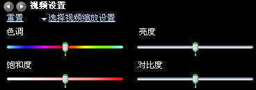 打开界面主菜单“查看→增强功能→视频设置”,便可在播放窗口底部出现色调、饱和度、亮度、对比度这四项调节按钮(图2),拉动上面的滑块就可以进行相关调整。