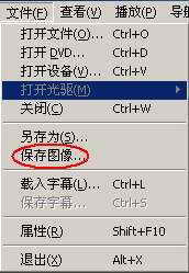安装完毕后,执行生成在桌面上的快捷方式,在播放媒体文件时打开“文件”菜单,发现MPC可以对DVD、CD/VCD等文件进行播放,并且还可以保存视频图像。