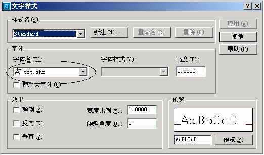中文字体不能正常显示的原因,在于AutoCAD文件样式中默认采用txt.shx字体,这种扩展名为.shx的字体大部分是不支持中文显示的。