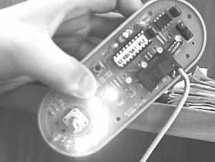 在仔细观察电路板后,笔者认为无外损和烧灼痕迹,然后又用嗅觉再次证明。笔者就放心将该控制电路的面板单独取出放在一防静电口袋上。而后,笔者再将播放控制器接在音箱上,开启播放键并用Winamp播放。同时左右摇晃该电路板(所有功能按键均裸露在上面),这时,故障真实再现了。