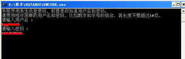 下载BQYAHOO后,进行解压缩。进入BQYAHOO文件夹中,我们可以看到一个文件名为Encode的可执行程序,双击它以命令行的方式运行Encode.exe文件。分别在“请输入用户名”和“请输入密码”中输入自己的雅虎邮箱用户名和密码(图1)。输入完成后,按回车键即可。这时在X:\BQYAHOO\Pass\文件中生成一个Pass文件,这就是生成的登录码。