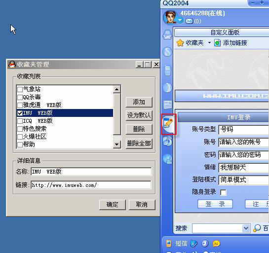 添加IMU即时通讯联盟:名称为IMU Web版,链接地址输入http://www.imuweb.com