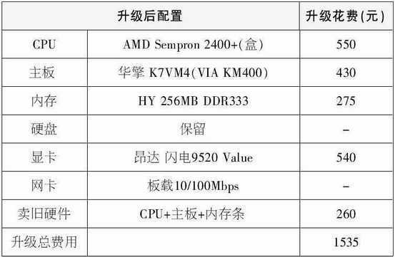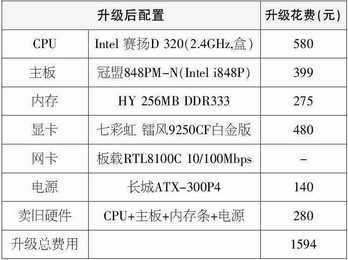 升级要求:能流畅运行WinXP;可以流畅地玩魔兽3、实况7以及主流的网络游戏;升级预算1500元。