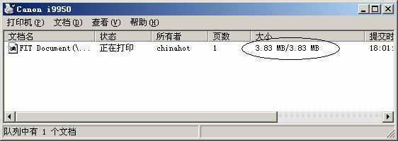 双击系统桌面中的“网上邻居”图标,在弹出的“网上邻居”窗口中,找到共享打印机,并用鼠标双击该图标,随后你就能浏览到共享打印机的状态显示窗口;在该窗口中,你要是看到类似“3.83MB/3.83MB”之类的数字时,就能准确知道当前打印机的工作进度了(如图,视打印机不同显示略有不同)。例如,“1.25MB/2.51MB”就表示当前正在打印的文档总容量为2.51MB,已经打印好的容量为1.25MB,根据这些数字你不难推断出目前共享打印机已经处理好了一般的打印任务。