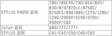 该产品适用的EPSON打印机型号非常多(见下表)。另外商家告诉百通C80/950/2100墨盒因为墨盒的原因需装上塑料片(图3)才能契合到墨盒上。