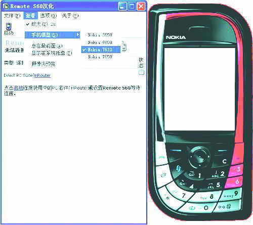 1.在电脑的Remote S60软件窗口中点击“Start”,电脑和手机开始连接,连接上以后Remote S60软件窗口中就显示出了手机屏幕中的内容,你还可以把软件的操作界面切换成手机的外形式样,这样在电脑中操作起来就更加方便逼真了!而连接上后,手机屏幕上也会显示出相应的信息。