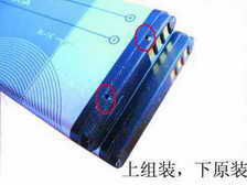 原装电池在接合的地方非常的紧密,基本没有什么缝隙!而组装电池却有很大的缝隙,而且在外壳的某些空当甚至可以看见电池的内部,如果发现这种情况,电池多半就是组装的了!如图2和图3所示,大家可以明显地发现组装电池和原装电池的一些细微的差别。