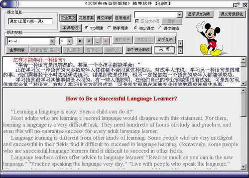 软件特点:包括了大学英语上、下两册的全部课文和单词,可自由选择课文、单词。内置语音模块,同时提供了单词助记方法、语法及题型辅导等。