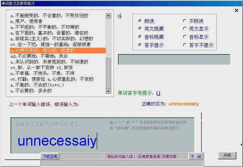 按照软件提供的中文注解在下方的输入框中填写相应的英文单词,如果拼错,那么正确的答案就会出现在右边,这样通过中英文对比的方式,我们可以加深单词的记忆。多练习几次,再难记的单词也不会忘记了。
