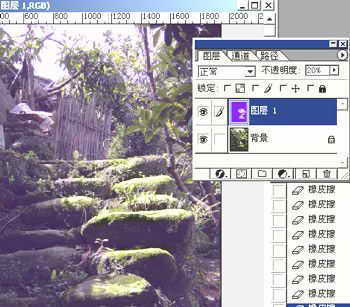 这张图片摄于四川柳江古镇,时间临近中午,光比较大,一户临河农家门口,点点阳光洒在青石台阶上,有点儿味道。但遗憾的是,天空太白,抢眼了,光也比较散,没有冲击力。但笔者仔细观察了图片,加上朋友的意见,用Photoshop只要四步,为图片加上了神秘的光影效果(图1)。让景色充满神秘感。