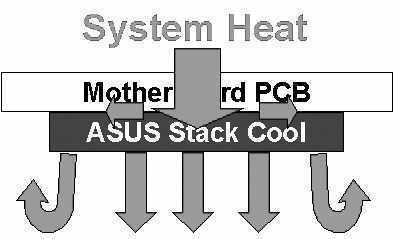 电脑系统内部温度对广大用户来说并非能够直接感受到,而华硕为了能提供一个保持长期高可靠性的系统,开发出Stack Cool主板专利降温技术,将主板零件上的高温透过零件的pin脚导入Stack Cool板,在系统高温运行下最多可以降低10℃以上的温度。和传统的风扇散热系统比较,风扇系统有寿命和故障问题,特别是一旦风扇出现故障之后,会严重影响系统的稳定性和安全性,而Stack Cool不仅能让主板温度下降而且是无噪声式设计,为使用者提供一个安静的使用环境,再搭配相应的散热片使用,能延长系统相关零件的寿命,让整套系统更加稳定。