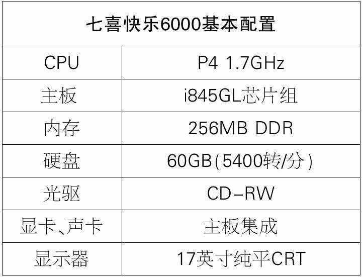 本期升级机型:七喜快乐6000