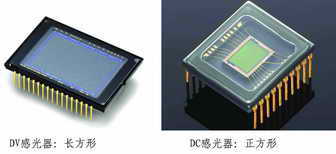 镜头、感光器、图像处理器、存储介质,在这些方面,DC与DV都存在共性。但是真正重要的是,DV所采用的CCD感光器与DC所采用的CCD感光器存在很大的差别(如图)。前者为长方形,面积相对较小;而后者为正方形,面积相对较大。由于低端DV一般采用隔行扫描方式,拍出的照片垂直分辨率不如DC。另外,虽然低端DV普遍具有10倍以上的光学变焦,但镜头往往还不如低端DC,如低端DV镜头直径普遍小于DC,镜头的直径、光圈变化范围也不如DC,镜头成像的畸变系数也大于DC。