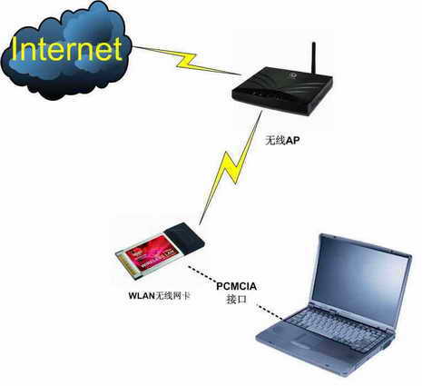 在中国移动WLAN网络覆盖地区,用户通过笔记本电脑、PDA等移动终端,在配备WLAN上网卡时以无线方式高速接入互联网、企业网,以获取信息、移动办公或者娱乐。共享接入速率最高可达11Mb/s。其连接示意图如图1所示。