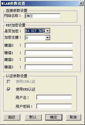 2.用户名和密码均使用默认的“Card”或“165”,接入号码“#777”。若点击“默认设置”其内容即会被初始化。