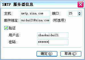 正确地输入SMTP服务器的相关参数,再单击“确定”即可。按照同样的方法你可以多设置几个SMTP备用服务器信息,以防不测。