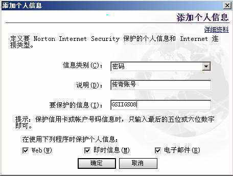 提示:你可以将你日常使用的密码相关信息全部添加到诺顿安全特警的保护列表中,这样即使不小心中了木马,也不用担心重要信息被木马窃取。