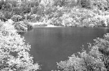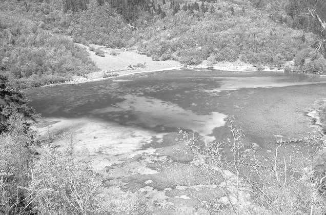 火花海海拔2187米,水深9米,面积36352平方米,水色湛蓝,波光粼粼。每当晨雾初散,阳光照耀,水面似有朵朵火花燃烧,星星点点,跳跃闪动。那掩映在丛丛翠绿中的海子,像一个晶莹无比的翡翠盘,满盛着瑰丽辉煌的金银珠宝。
