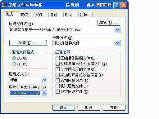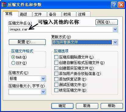 选择“添加到压缩文件”可以打开对话框(图2),这里可以重新输入压缩文件名,比如改成图片.rar;在“压缩方式”选项,默认为“标准”,要提高压缩速度选择“最快”,要提高压缩质量选择“最好”。
