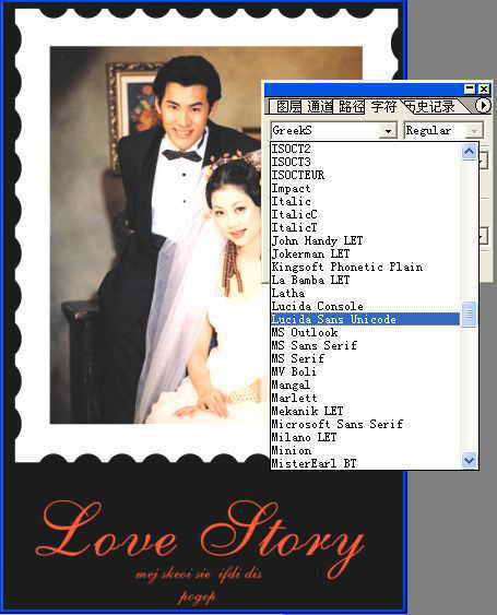 对很多普通图像处理用户来说,要对文字做一个特效还是一件困难的事情。那么你只要做好了将文字在照片上的合理摆放,色彩搭配得当,往往会起到非常好的艺术效果。使作品看起来更高雅,更具有艺术魅力。对婚纱照片的处理也应慎重对待。