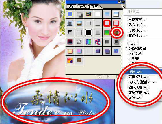 作为Photoshop的初级使用者,想快速实现文字艺术特效,可直接在样式控制面板中选择。点菜单:“窗口→显示样式”,在样式控制面板中点右上角的倒三角形,在下拉菜单中我们可以看到提供了很多类样式效果。比如我们选择“文字特效”,在样式控制面板中就有30多种文字特效可选择(图1)。你想用哪一种,只需要对相应的效果双击鼠标即可。