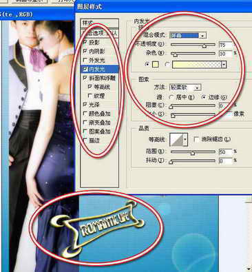 你要选择什么样式,先在左边勾选一个效果类别,然后右边你可以对相应的参数进行调整。如这里我们选择斜面和浮雕效果,在右边我们可对浮雕的模式、透明度以及浮雕的高度、大小和颜色进行仔细的调整。这里你还可以同时勾选多种不同的效果,如阴影能增强立体效果,内发光和外发光能做出光线强烈的效果等。一开始对控制面板的复杂的参数会感到头晕,多试几次你就会逐渐掌握对它的使用技巧了。