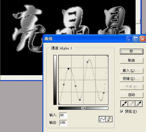 1.建立一个新文件,切换到通道面板,单击下面的建立新通道按钮,建立一个新通道“Alpha 1”,输入文字,如“亮晶晶”,调整好位置后按“Ctrl+D”(取消选择的快捷键),然后点菜单“滤镜→模糊→高斯模糊”设置模糊大小参数为“2.5”,按“确定”结束。