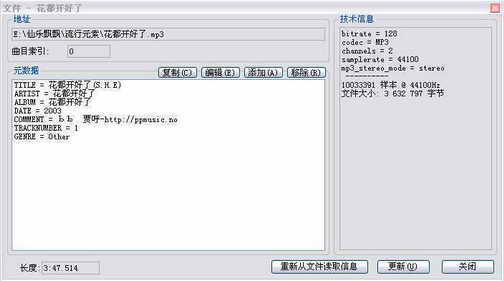 MP3都是双声道立体声音频,见图1中正在播放的MP3的技术信息的channels=2,mp3_stereo_mode=stereo,这就是立体声的标志。现在大多数的电脑玩家使用的都是2.1音箱,所以多声道立体声音频对我们没多大意义,除非你使用的是5.1音箱(因此这里仅局限于双声道立体声效果的制作)。双声道立体声音频可以通过两个麦克风采集得到,不过作为电脑玩家的我们完全可以人为地模拟出两个声道的时间差和空间差从而得到立体声的效果,因为现在的音频编辑软件的功能实在是太强大啦!