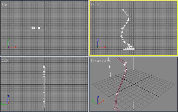 1.首先创建出花瓶的样式。进入到“Create(创建)→Shapes(二维图形)”子命令面板中,单击Line按钮,找到在Front视图中一条类似于瓶子边缘的曲线(图2)。接着对这条封闭的曲线进行平滑处理,然后将它旋转就得到了花瓶的模型了。接下来我们使用3DSMAX6中自己附带的材质对它进行贴图设置,一个漂亮的花瓶就做好了。
