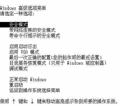 第一步,在“Windows XP高级选项菜单”中选择“安全模式”并回车。