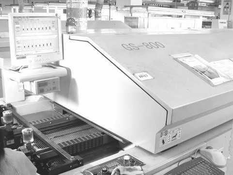 所有贴片元件只是借助锡膏粘贴在PCB上,并没有真正固定好,必须通过回流焊来完成焊接。在回流焊炉中,锡膏在225℃左右就会熔化,然后等温度冷却后,元件就牢牢焊接到PCB上了。