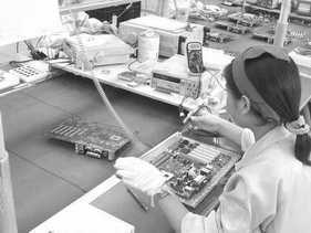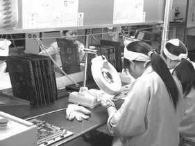 接下来工人要对半成品主板进行目测,检查主板上是否有缺损、翘件、锡连、偏移等问题。在检测过程中,为了防止静电对电子元件及主板造成损害,工作人员都要佩戴防静电手环。