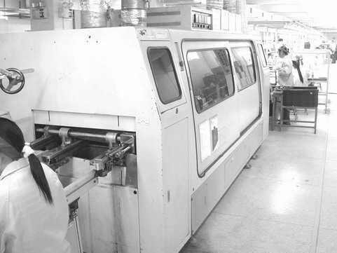 当DIP元件全部安装到主板PCB上后,就要通过波峰焊来完成焊接。波峰焊炉就像一个大火炉,里面是高温熔化了的锡水,装好插件的PCB经过这个设备后,DIP元件就焊接好了。