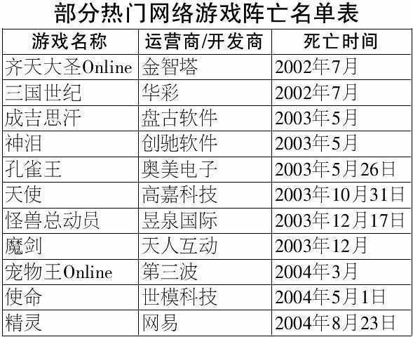 编者按:据统计,从网络游戏出现以来的170多款网络游戏中有近百种处于半死不活或者无法收费的状态,而还有30多款则已经宣布停止运营。这些已经宣布停止运营的游戏犹如一座座墓碑,清晰地记录着它们的历史和警告着后来人。相对而言,我们国内的很多玩家经历了相当多让人欲哭无泪的事件。自己花费精力、花费时间培养的游戏人物,也许在一夜之间就消失无踪,这实在让人扼腕叹息。而我们今天在这里将这些现象做个总结,并不是想说明某个运营商有以下这几种行为之一,而是让广大玩家以及投资商、代理商都提高警惕,在选择一款游戏准备向里面投入金钱和精力之前,要先想想这个公司是不是真有能力和实力将这款游戏正常正规地运营下去,免得到了游戏死亡的时候再次出现一幕又一幕的伤心事件。