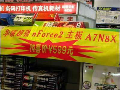 主板市场,市场中已经出现多款支持LGA775处理器的主板,主流市场中也出现了不少高性价比产品。Intel平台,隽星新款865GV主板MB-865GVML,采用小板设计,售价499元。Intel原装915主板915GAV到货,采用Intel 915G Express芯片组,报价1500元。华硕A7N8X主板+R9550显卡(128MB/128bit)套装价1199元。AMD平台,技嘉上市一款K7主板GA-7NF-RZ,报价549元。微星K7N2 Delta2白金版上市,南桥采用最新的nForce2 Gigabit MCP,支持硬件防火墙与千兆网络输出,报价799元。699元的映泰KT400A+Sempron 2200+套装,以及华硕降至599元的nForce2主板A7N8X等都具有不错的性价比。