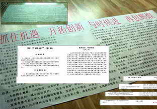 第三步:每个文字就是一张大图片,按照前面讲到的长纸打印拼接办法,用裁切的旧报纸将所有文字打印出来并拼接好(图7)。
