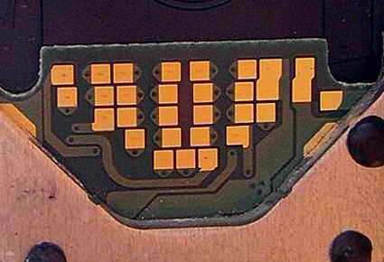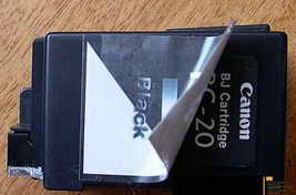 另外还有一些小品牌兼容墨水厂商,可能是为了快于其他竞争对手发布墨盒产品,竟会卑劣地对产品采用“偷梁换柱”的手段,收购原装废旧墨盒填充墨水,并贴上自己的品牌标签,以达到产品快于其他竞争对手上市的目的,这样的“二皮脸”产品通常可以轻易识破(图5:撕开标签,原来是用Canon原装墨盒“回魂”的产品)。查看墨盒金属点是否有使用过的痕迹(图6:电路接触点有明显磨损和使用痕迹),也是避免买到此类产品的有效方法。