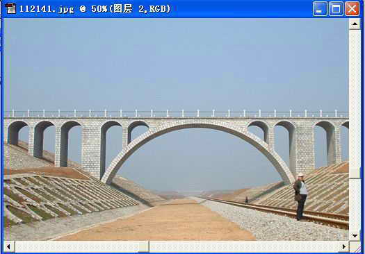 当我们操作完这一步时,你会发现照片中的桥梁非常地水平了(图5)。原来刚才的“4.67”就是原始照片倾斜的角度,在这里已经将它旋转过来了。最后剩下的工作就是用裁剪工具将照片中有效的部分裁剪出来即可。