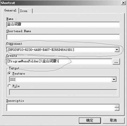 运行\WinConsole\seasw.exe建立相关的快捷方式,以及程序组信息。打开刚开始建立的msi应用程序。选取Ttle下的Fles组件,在窗口右侧出现《金山词霸》所有的已经安装的文件信息,双击dict.exe,出现dict.exe的相关组件信息。记住关联的组件,在创建快捷方式的时候需要使用,选取Ttle下的Shortcuts组件,右侧出现增加按钮添加需要创建的信息。Componet必须选择其执行文件对应的相关组件,Create中是创建的快捷组的名称(如图1)。点击Icon,点击“SelectIcon”(见图2),选择应用程序的图标保存即可完成MSI文件的制作。