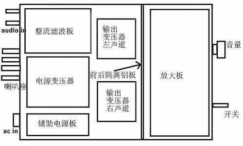 (1)制作时,应先将整流滤波板和放大板的元件焊好,变压器等要先用螺丝固定到机壳底上,变压器和机壳之间应加垫一层橡胶皮或别的物质,以减小变压器的振动给音质带来的不良影响,然后将整流滤波板和放大板安装到机壳里,整理好它们之间的走线,然后将线一根根焊好,多余的线剪去。所有的地线要接到机壳上,并且要一点接地,接地点一般选在IEC座附近就可以了。