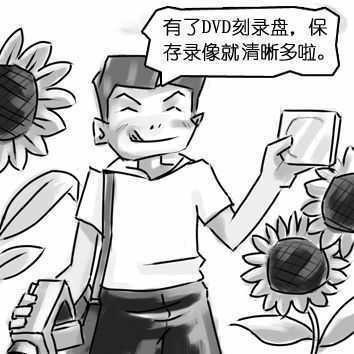 我们用了四幅漫画来说明DVD刻录机,在生活中给我们带来了哪些好处。