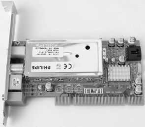 艾尔莎 掠影者400电视卡,采用飞利浦SAA7134HL影像解码芯片和飞利浦MK3高频头。使用Low profile规格、四层PCB板及稳压回路设计。支持直接烧录、视频采集预约录像、时光平移等功能,并提供无线遥控。包括音频输出、射频同轴输入、S端子输入和音频输入接口,随卡附赠《ELSA PVR》软件。