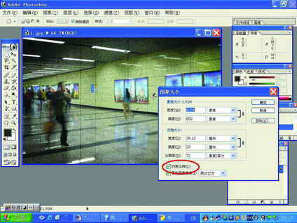 步骤二:在菜单“图像──图像大小”中以“约束百分比”方式调整图片面积为原图1/4大小(长宽各为原来的一半,图10)