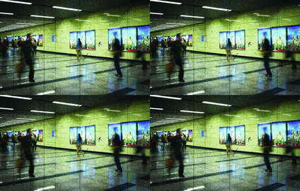 步骤一:将DC连拍取得的4张(或更多)时间连贯的照片选取,并执行上述5种PS操作得到“艳丽色彩”“暗角”“漏光”“噪点蒙尘”一种或多种效果。